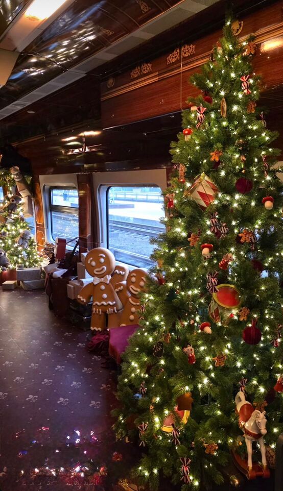- le carrozze, nel periodo di Natale, erano decorate con motivi natalizi, i sedili ricoperti di velluto rosso e ogni vagone aveva una particolarità. Si vede la ricercatezza e la cura nei dettagli.